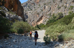 ![]() Unzählige Schluchten laden auf Südkreta ein zu abwechslungsreichen Wanderungen. | ![]() Inzwischen sind in vielen auch abgelegenen Schluchten gut begehbare Wanderwege angelegt. | ![]() Weitab aller Touristenpfade: Schluchtenwanderungen auf Kreta garantieren Entdeckungen. |